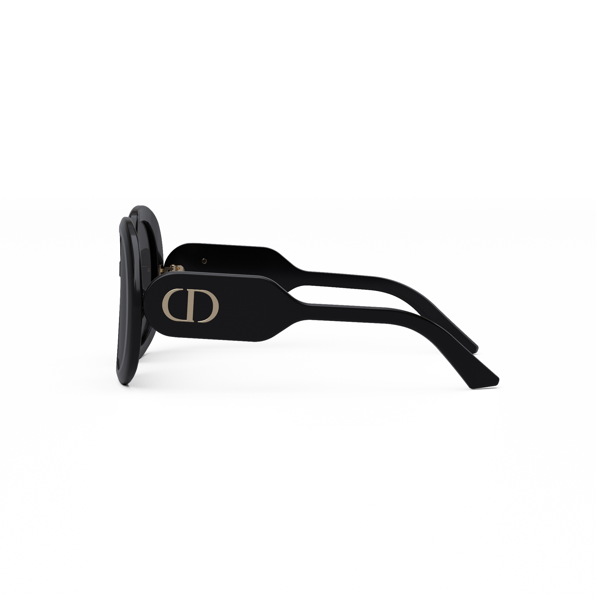 Graficzne kształty soczewki i miękkie krzywizny podkreślają elegancką sylwetkę tego stylu z logo „CD” w złotym odcieniu na zausznikach.
